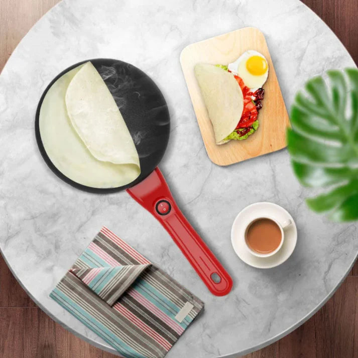 CrepeCraft elektriske crepe maker er din ultimative løsning til hurtige og ubesværede crepes, forårsruller og kager. Dens øjeblikkelige opvarmningsfunktion sikrer jævn madlavning, mens non-stick-overfladen giver mulighed for nem vending og minimal rengøring. Skab perfekt tilberedte lækkerier med lethed og nyd problemfri tilberedning hver gang.