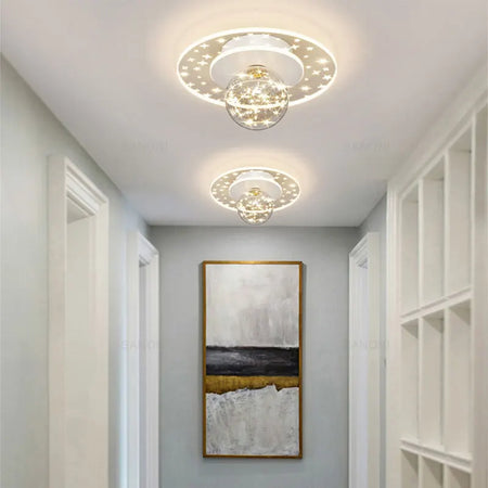 CrystalGlow-loftslampen bringer et moderne design til dit hjem og skaber et fantastisk visuelt i gange og indgangspartier. Med sit slanke design og funklende krystalaccenter bringer denne lampe en luksuriøs følelse til ethvert rum. Det giver et blødt, varmt hvidt lys, der med lethed lyser rummet op.