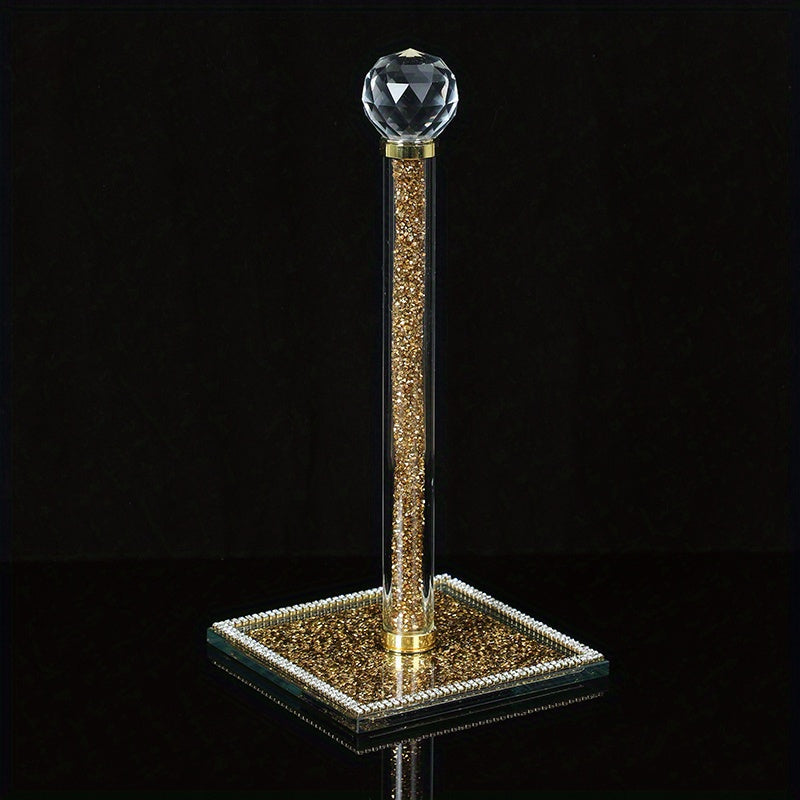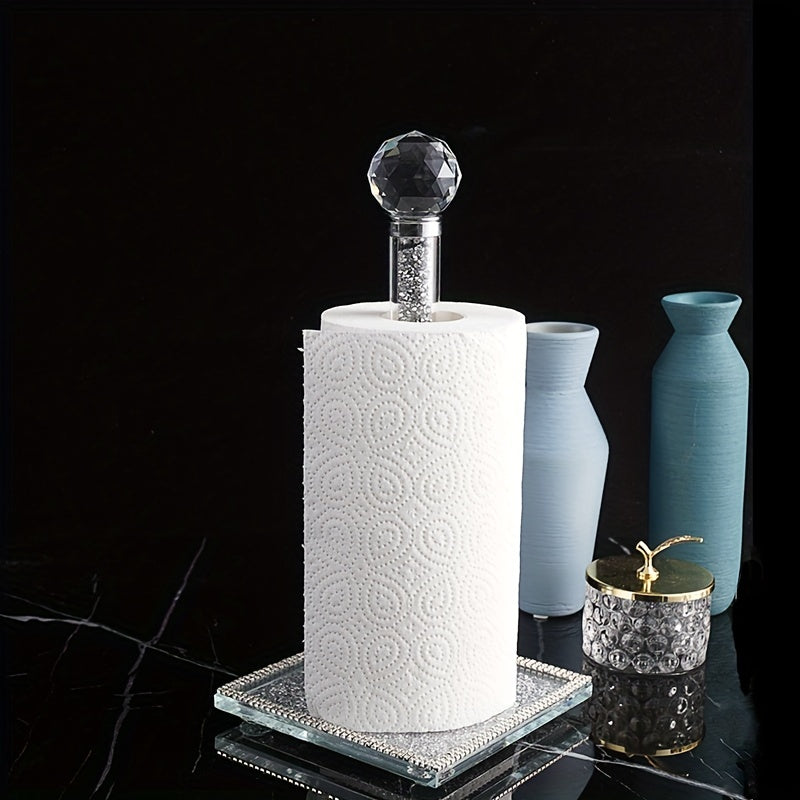 Forbedre dit køkken eller badeværelse med CrystalHold stående papirhåndklædeholder, med funklende krystaldekor. Dette smukt udformede tilbehør kombinerer funktionalitet med raffineret elegance, hvilket gør det til et fremtrædende stykke i alle omgivelser. Den er designet til bekvemmelighed og tilbyder en stilfuld måde at holde dine papirhåndklæder inden for rækkevidde.