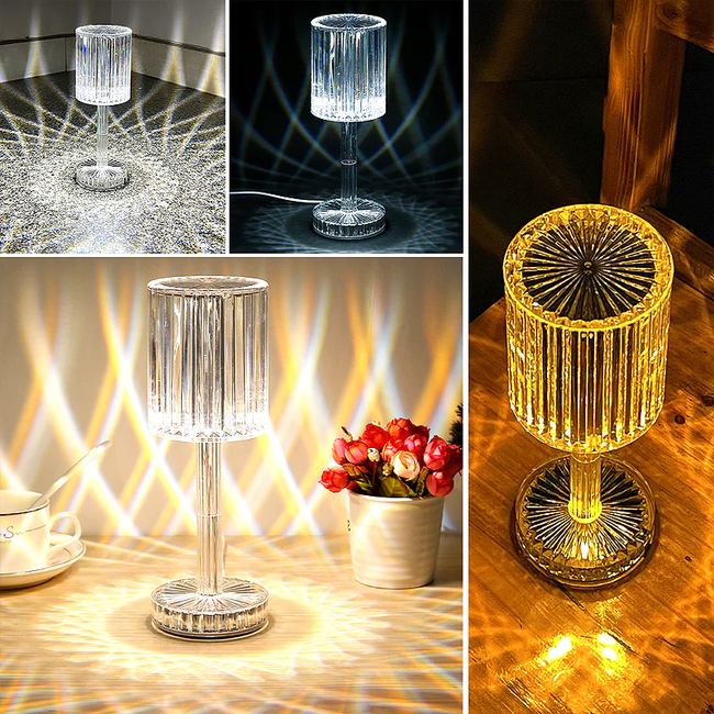 Forvandl dit rum med CrystalLuxe-lampen, designet til at skabe en tidløs atmosfære i ethvert miljø. Dets udsøgte krystaldesign bryder lyset smukt og kaster fantastiske mønstre, der er perfekte til sociale sammenkomster eller til at tilføje en hyggelig glød til din sengekant under en afslappende aften.