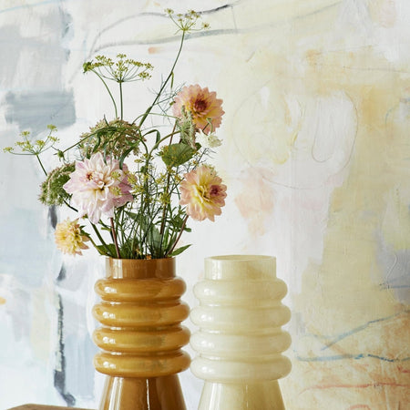 CurveBloom har et karakteristisk rillet design, der blander moderne stil med tidløs elegance. Dens afrundede kurver skaber en legende, men sofistikeret æstetik, hvilket gør den til en slående tilføjelse til enhver boligindretning. Uanset om den placeres på en hylde, et bord eller en kappe, forbedrer denne vase stemningen i ethvert rum, mens den problemfrit komplementerer en række forskellige interiørstile.