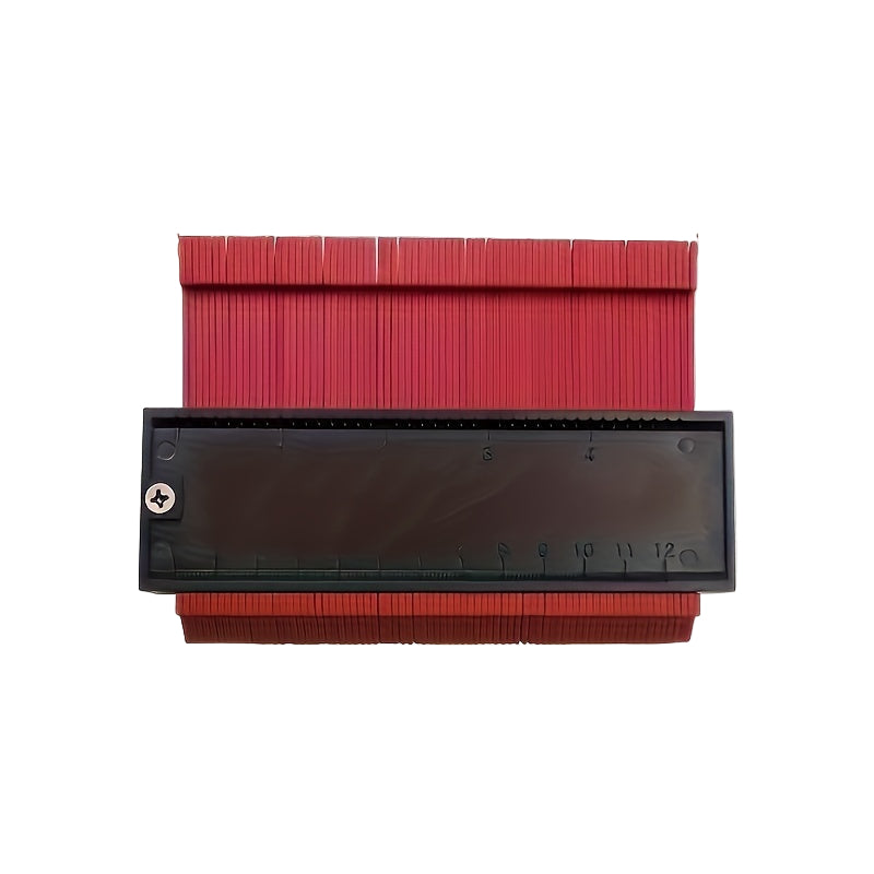 Dette værktøj har rækker af nåle, der kan presses mod et objekt for at skabe en præcis kontur. En låsemekanisme er designet til at fastholde nålene i position, hvilket gør det muligt at overføre profilen til en anden overflade. Det er et essentielt værktøj til præcise måle- og layoutopgaver inden for håndværk og DIY-projekter.