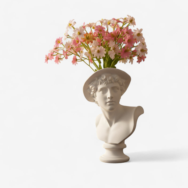 DaviForm er en keramisk vase designet til indendørs dekoration og udstilling. Den kan bruges som beholder til blomster, planter eller andre små genstande. Med sin skulpturelle form er vasen velegnet til placering på skriveborde, hylder eller borde i hjemmet eller på kontoret.