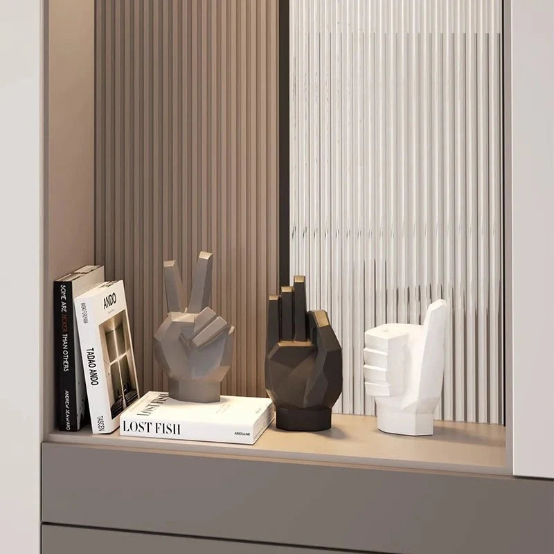 - Skulpturelt design, der repræsenterer udtryksfulde håndtegn