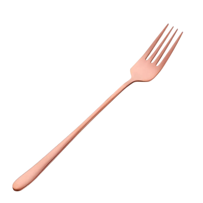 DecorLane-gaflerne er fremstillet af højkvalitets rustfrit stål med spejlpoleret finish. Hver gaffel har buede håndtag for behagelig brug. Fås i flere farver blå, sort, lilla, sølv, guld og rosaguld og kan bruges til både daglig brug og formelle måltider.