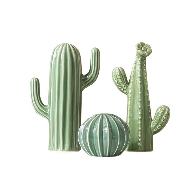 DesertBloom – Sæt med 3 keramiske kaktusornamenter til moderne indretning