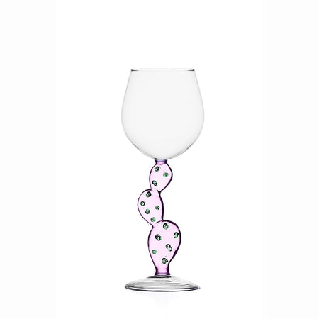 Dette vinglas har en iøjnefaldende kaktusformet stilk, der tilføjer et stilfuldt og kunstnerisk præg. De detaljerede udskæringer forstærker dets charme, hvilket gør det både funktionelt og dekorativt. Den klassiske skålform komplementerer den kreative base og skaber en perfekt balance mellem elegance og sjov. Dette unikke design gør det til en bemærkelsesværdig tilføjelse til enhver glassamling.