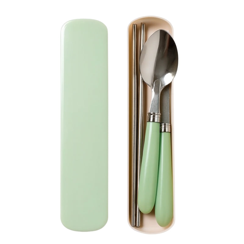 Det bærbare bestik sæt DineMate inkluderer en gaffel, kniv, ske, spisepinde og et kompakt rejseetui til at holde alt organiseret. Fremstillet i rustfrit stål, er det let, genanvendeligt og ideelt til picnic, camping, frokoster på kontoret eller rejser. Sættet tilbyder et genanvendeligt alternativ til engangsbestik.