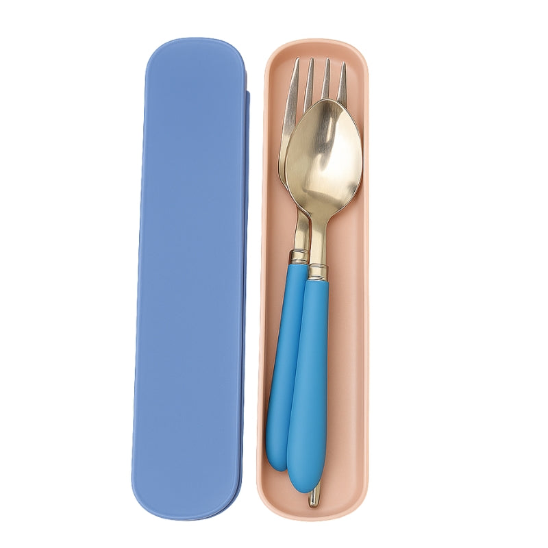 - Komplett sæt: gaffel, kniv, ske, spisepinde og rejseetui