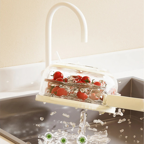 DrainEase forenkler køkkenopgaver ved at kombinere vask og afdrypning i ét værktøj. Perfekt til at skylle frugt, grøntsager eller afdrypning af pasta, hjælper den med at holde dine bordplader rene og organiserede, samtidig med at den gør madlavning hurtigere og nemmere.