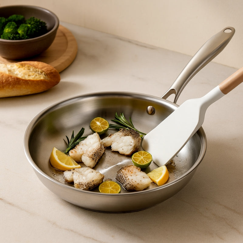 EasyCook stegepande har en non-stick belægning og et indbygget hulgreb. Den kan bruges til stegning, sautering og almindelig madlavning.