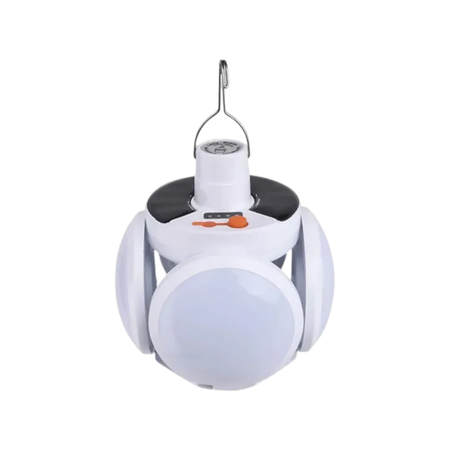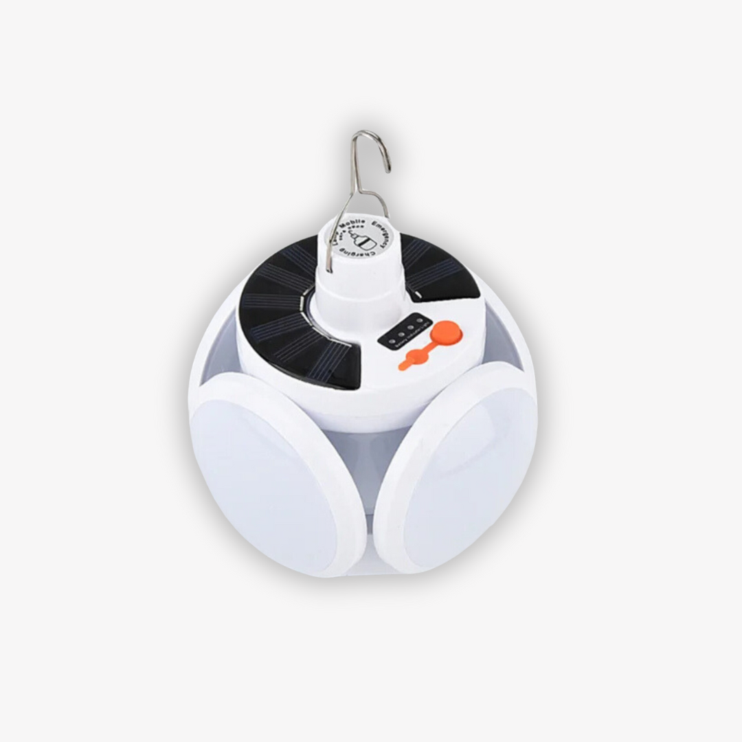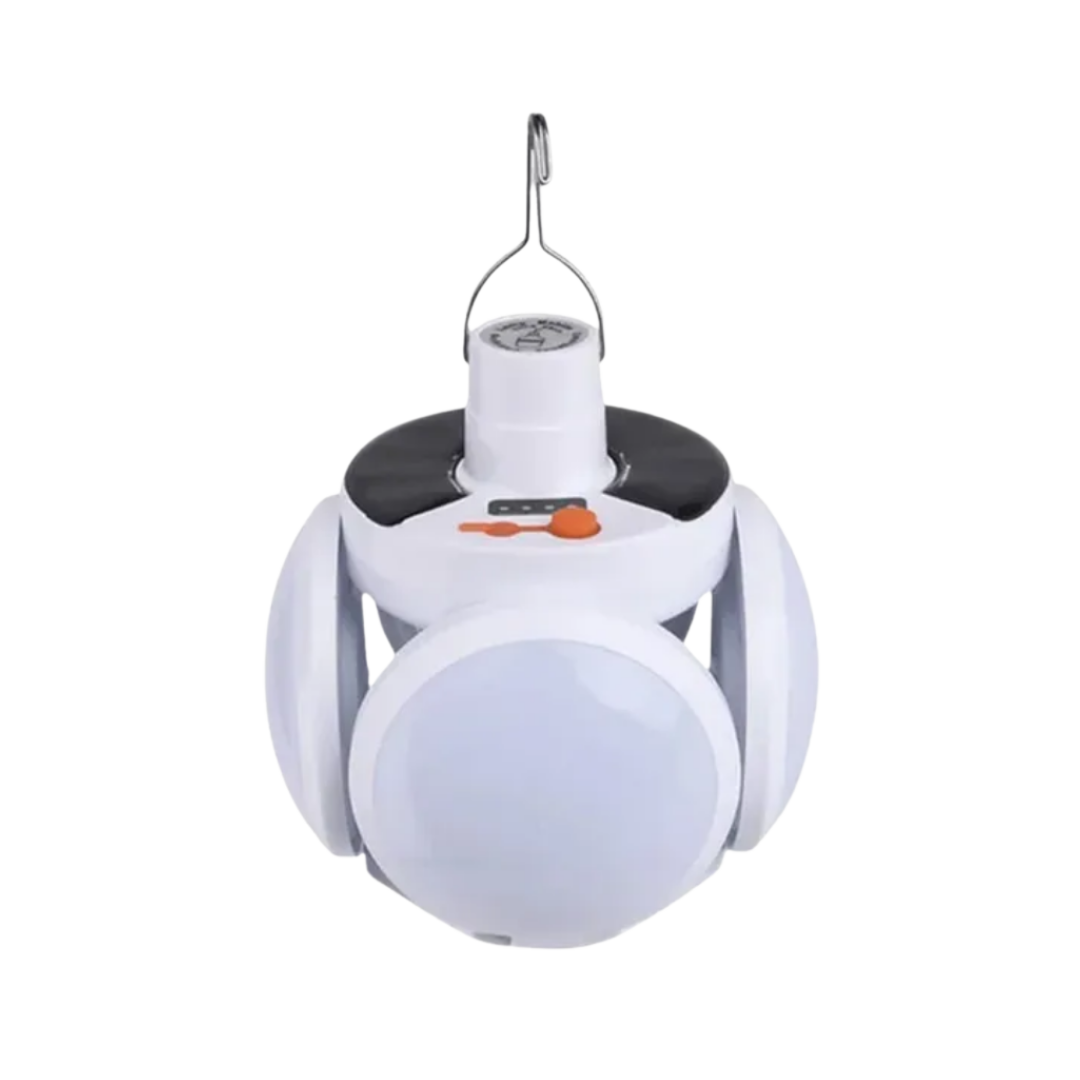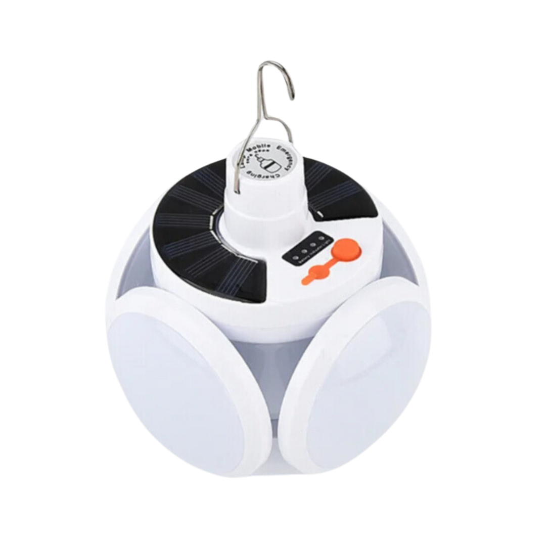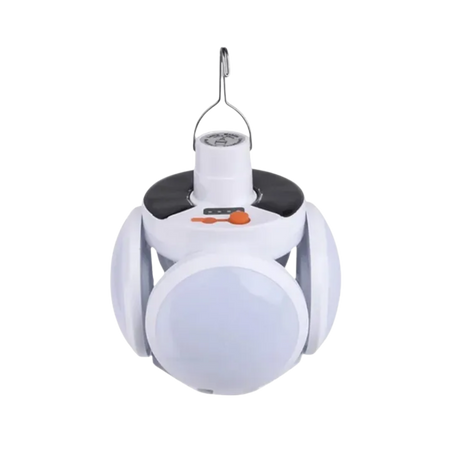 Denne praktiske lampe kan oplades via både solcelle og USB. Uanset om du er udendørs uden en stikkontakt eller blot ønsker at oplade indendørs, har denne lampe dig dækket. En fuld opladning kan vare op til 12 timer, ideel til lange campingture eller nødbelysning.