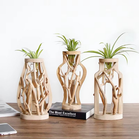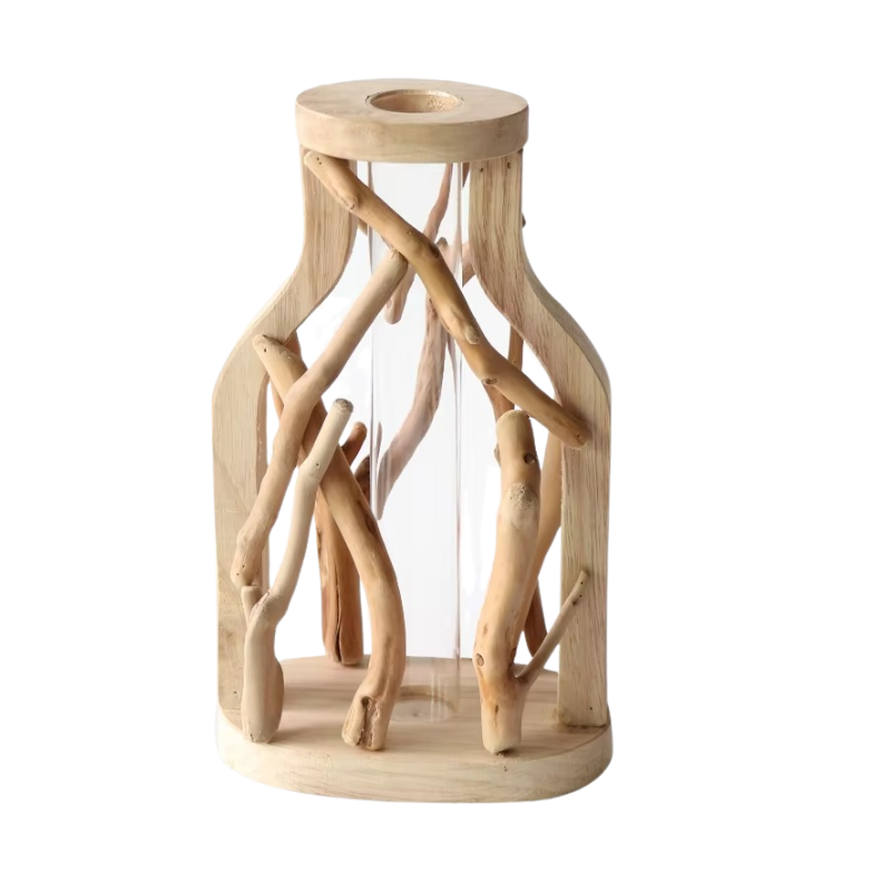 EcoBranch vasen er formet som sammenflettede grene og giver et markant naturligt udtryk. Den kan bruges som funktionel vase til blomster eller som et selvstændigt dekorativt element. Velegnet til stuer, gange eller kontorer, hvor den tilfører et naturligt præg med praktisk funktion.