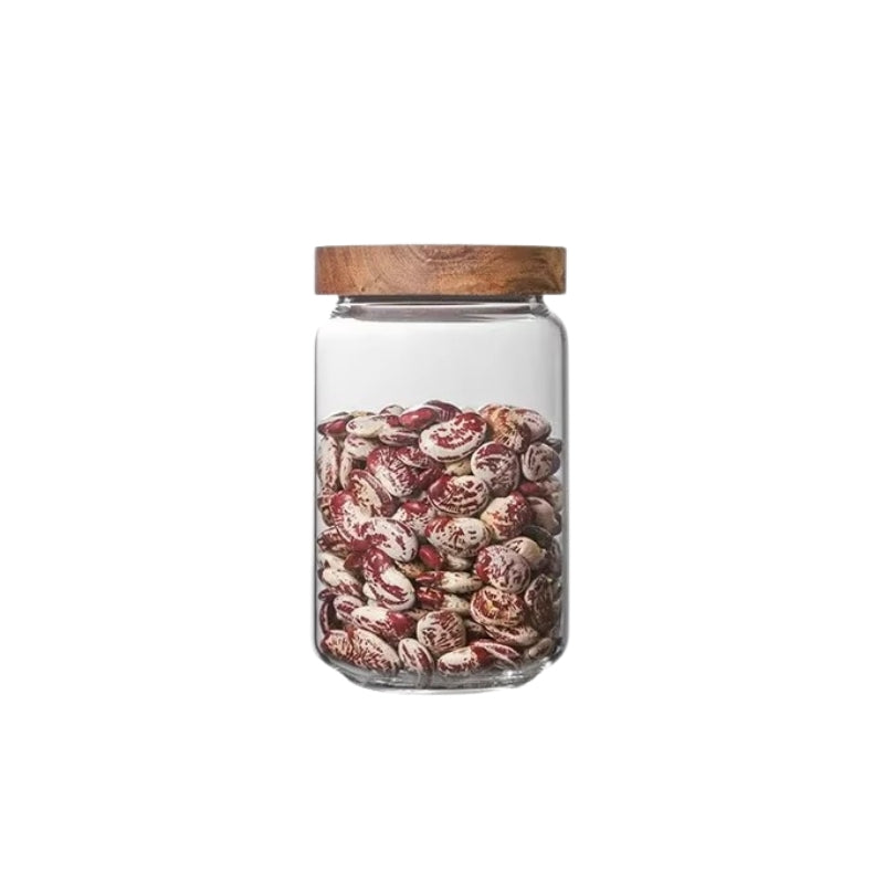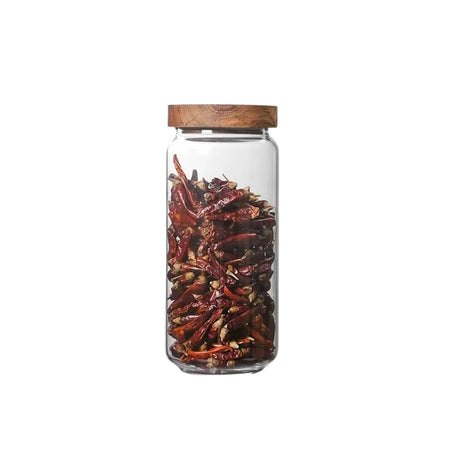 EcoJar rundt glasrør tilbyder både funktionalitet og elegance til opbevaring i dit køkken. Med en gennemsigtig glaslegeme for nem synlighed og et lufttæt træ låg for at holde indholdet friskt, er denne krukke ideel til opbevaring af krydderier, korn eller andre køkkenartikler. Dens slanke design og naturlige træ låg tilføjer et rustikt præg til dit køkken.