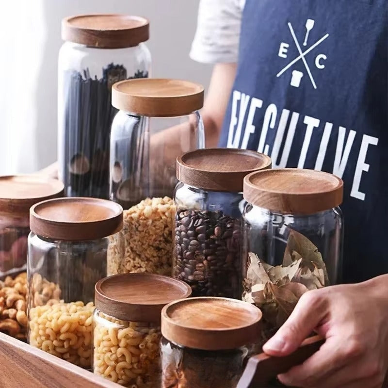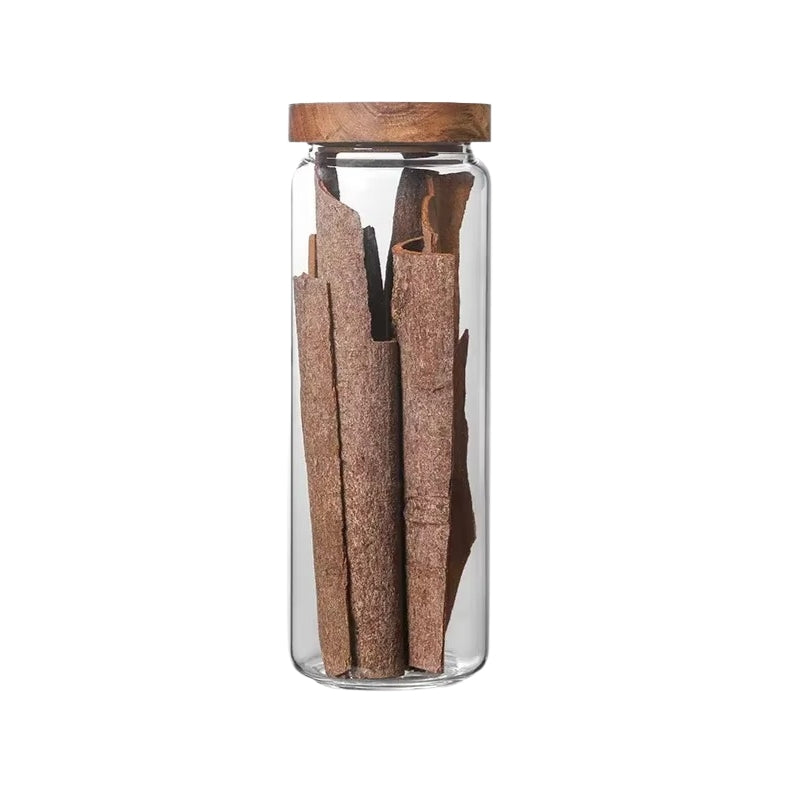 EcoJar - Forseglet Rundt Glasrør med Træ låg