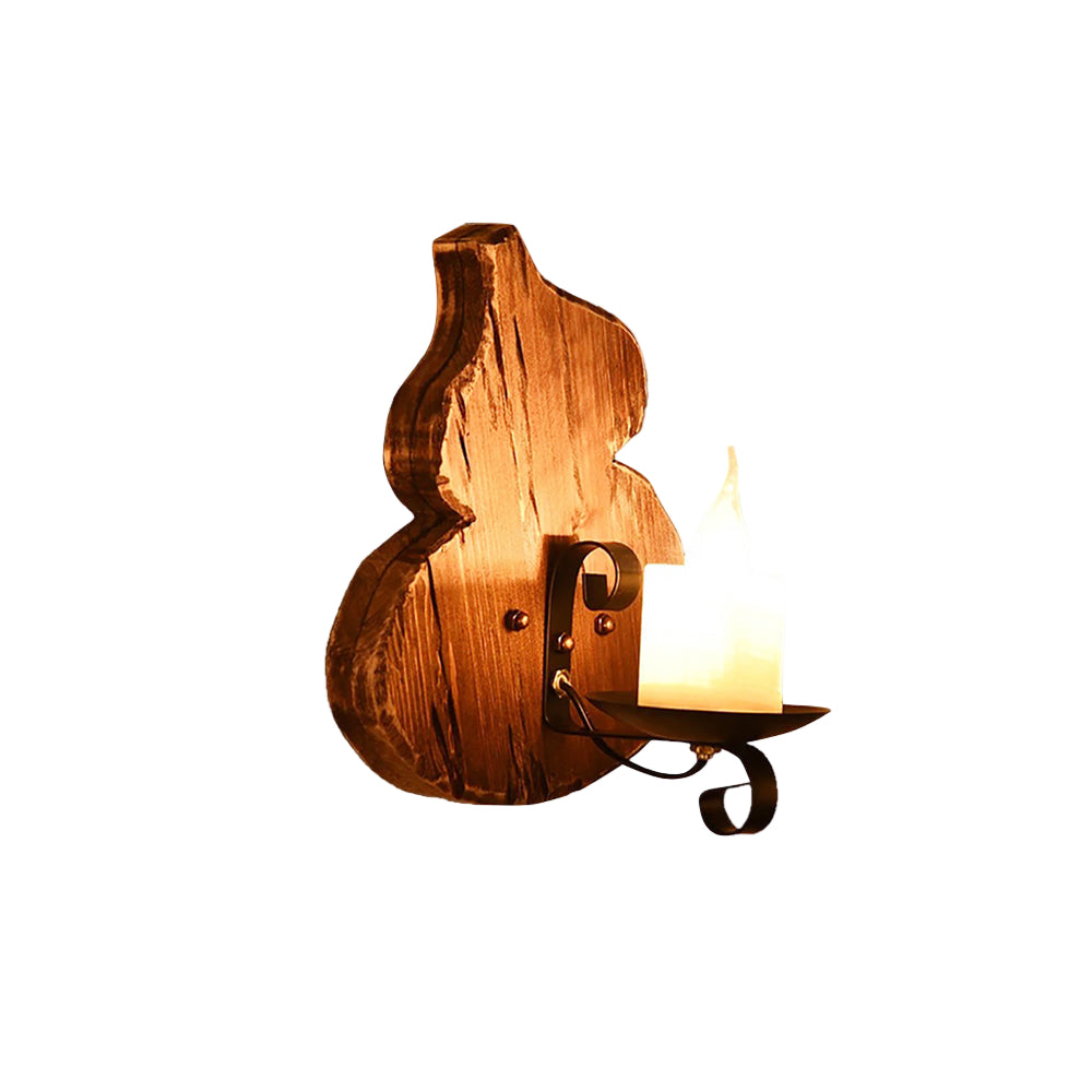 EpochLite – Vintage væglampe i træ og metal med kalabasform og lysestage