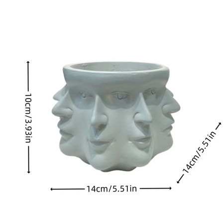 FaceBloom giver et dristigt og moderne twist til din planteudstilling med sit iøjnefaldende 3D-ansigtsdesign. Denne urtepotte blander kunstnerisk flair med hverdagsfunktionalitet, hvilket gør den til et iøjnefaldende møbel i ethvert miljø. Uanset om den placeres i en stue, på kontoret eller i entréen, tilføjer den et unikt og stilfuldt accent. Dens skulpturelle form tiltrækker naturligt opmærksomhed og sætter gang i samtaler.