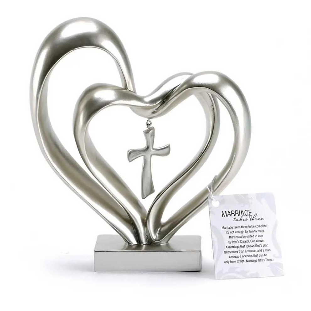 FaithBond er en smukt designet bordaccent, der symboliserer det hellige bånd mellem to hjerter forbundet af tro. Med et sammenvævet hjerte og kors repræsenterer det budskabet "Ægteskab tager tre", der fremhæver vigtigheden af kærlighed, tillid og åndelig vejledning. Dette meningsfulde stykke bringer varme og inspiration til ethvert miljø og minder par om deres varige engagement.