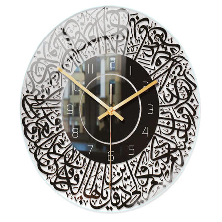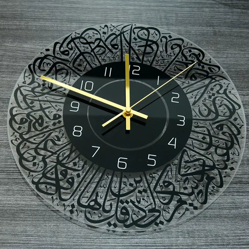 FaithClock er den perfekte tilføjelse til dit muslimske hjem og tilbyder både praktisk og smukt design. Det udsøgte islamiske design forbedrer din stue og skaber en atmosfære af fred og refleksion. Dette kvartsvægur er mere end blot en tidsmåler; det er et kunstværk, der hylder islamisk kultur, samtidig med at det tjener et funktionelt formål.