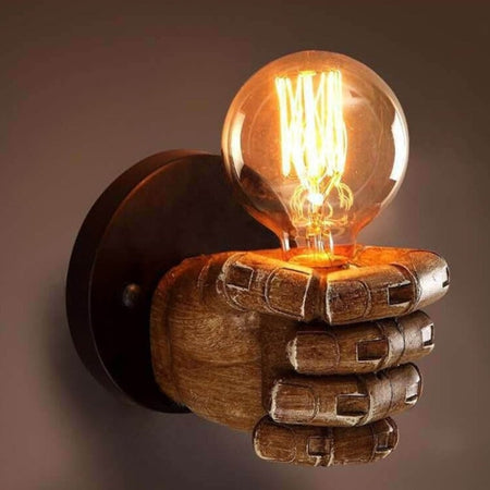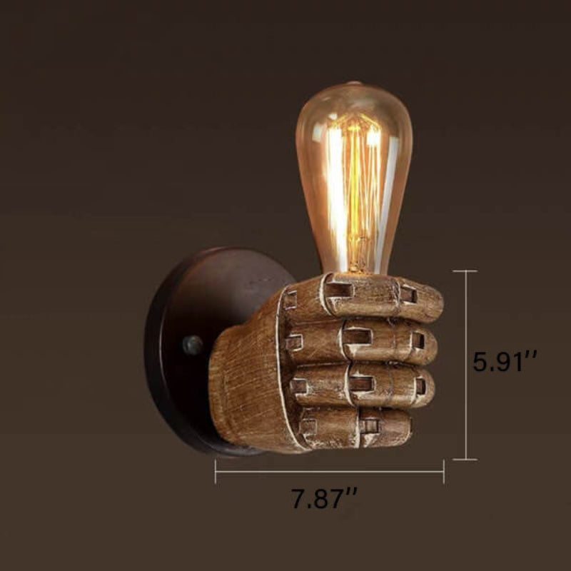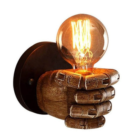 FistGlow – Industriel Væglampe i Resin med Trælook