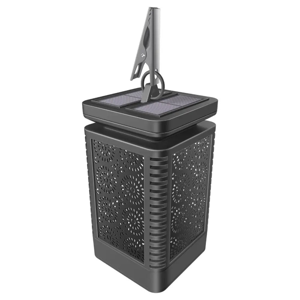 Denne smukke havelanterne udsender et smukt fakkellys. Det får det til at se ud, som om en rigtig ild er tændt. I virkeligheden brænder lampen på selvgenereret solenergi via panelet på toppen af lampen.