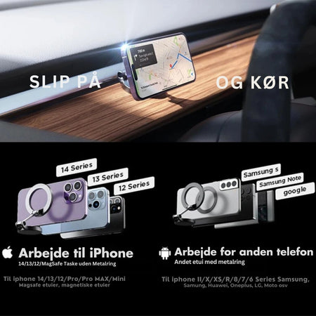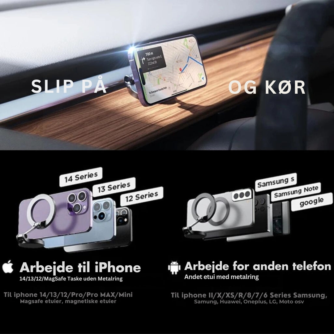 - Stærkt magnetisk greb for sikker placering af telefonen.