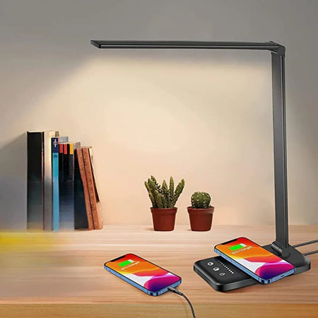 Med sin moderne æstetik kombinerer FlexiLight stil med funktionalitet. Lampen er udstyret med en berøringsfølsom sensor og har fem lysstyrkeniveauer og fem lystilstande, så du kan tilpasse belysningen til dine behov. Dens USB-opladningsfunktion giver et ekstra lag af bekvemmelighed, hvilket gør den til en alsidig tilføjelse til dit skrivebord.