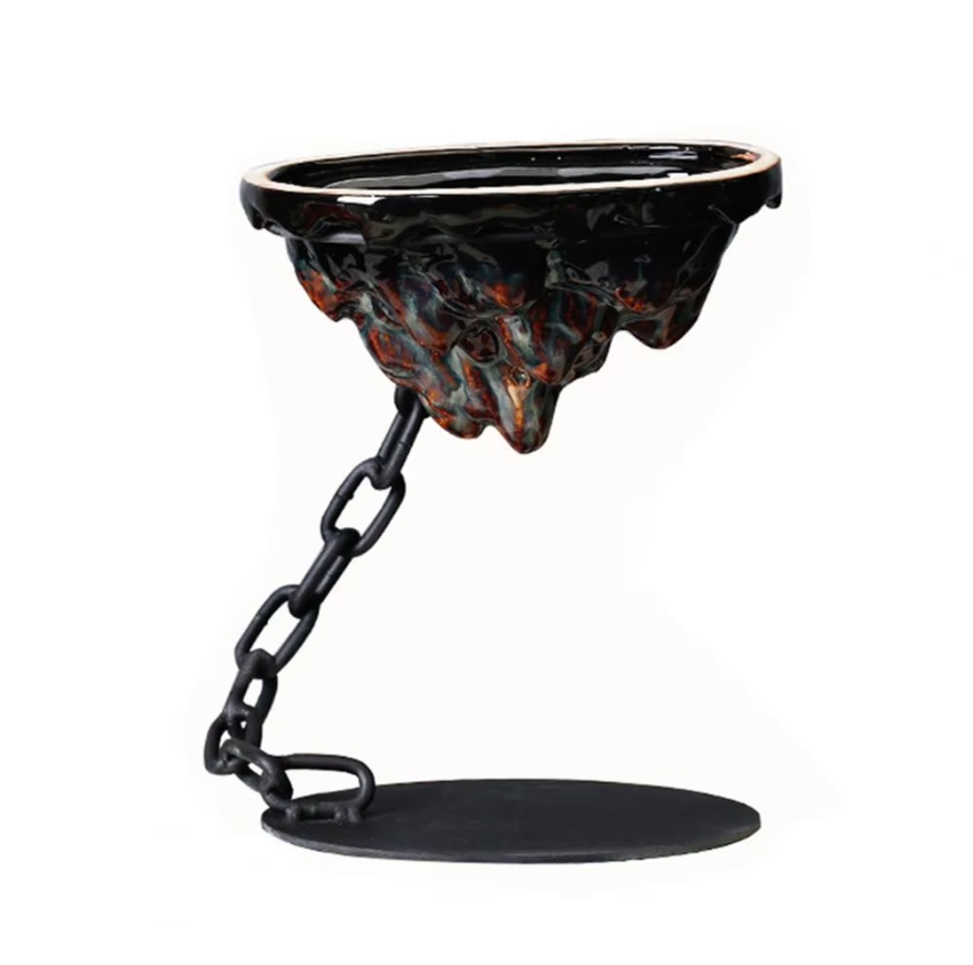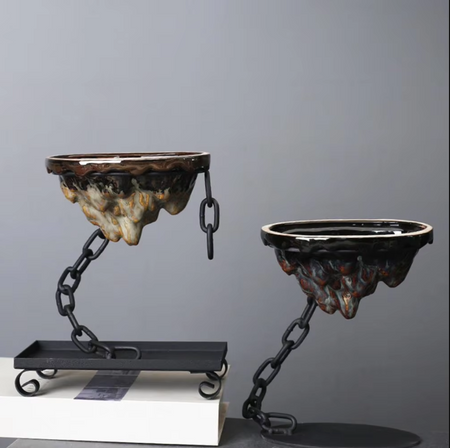 Træd ind i stilen med en dekorativ planteholder designet til at ligne en flydende sten ophængt af en kæde. Dette iøjnefaldende stykke skaber illusionen af en frodig grøn plante, der hviler oven på en tekstureret base, hvilket bringer et moderne og kunstnerisk præg til ethvert rum. Perfekt til hjem, kontorer eller haver, det tilføjer et slående visuelt element, der blander natur med moderne design.