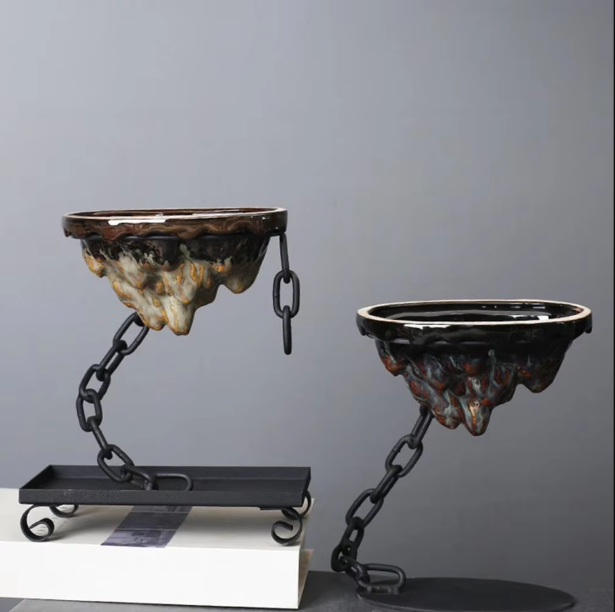 Denne planteholder fungerer både som et dekorativt statement og en praktisk måde at fremvise grønt på. Dens unikke design gør den til en samtalestarter, mens den komplementerer en række forskellige interiørstilarter. Uanset om det er placeret i en stue, arbejdsplads eller udendørs område, forbedrer den stemningen med en balance mellem rustik charme og moderne æstetik.