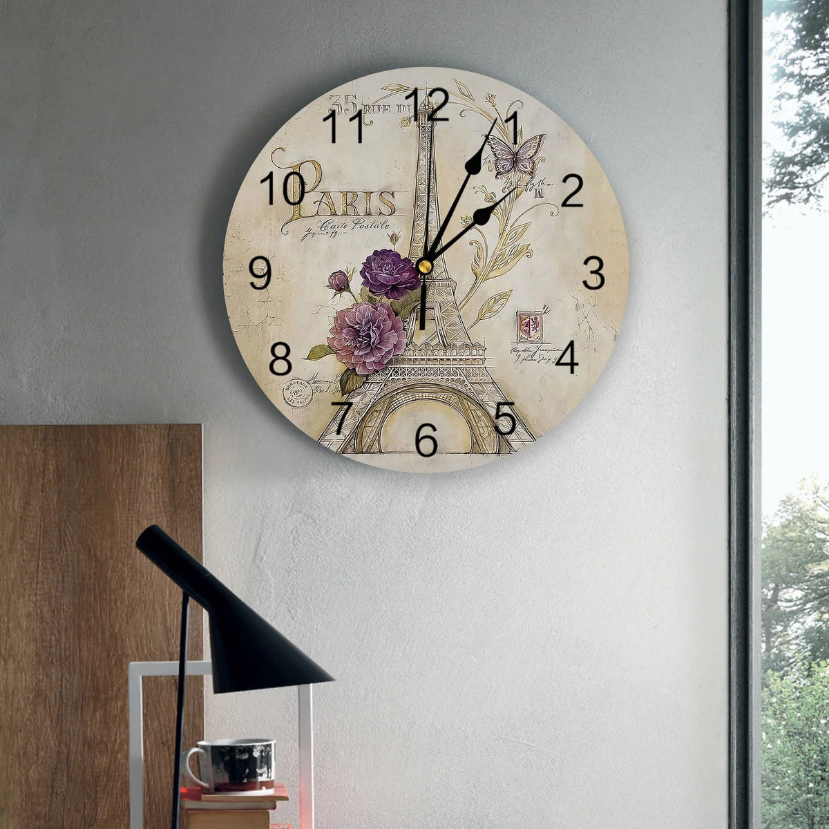 FloraBelle – Paris-inspireret vægur med tårnmotiv og romantiske blomsterakcenter