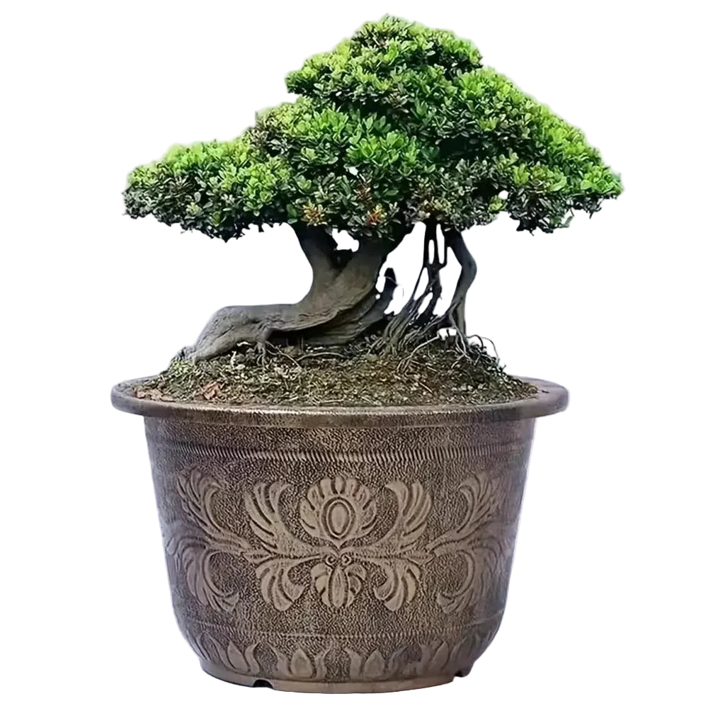 FloraBronze – Udsmykket rund plantekrukke med drænhul