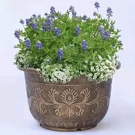 FloraBronze tilfører raffinement til din haveglæde med sine præget blomsterdetaljer og klassiske runde form. Designet til både indendørs og udendørs brug forener den skønhed og funktionalitet med et indbygget drænhul, der understøtter sunde rodforhold. Let, men holdbar, er denne krukke ideel til mellemstore og store planter – fra dekorative stueplanter til blomstrende altan- og terrasseblomster. Med sin antikinspirerede bronzefinish fungerer den både som praktisk og dekorativ accent.