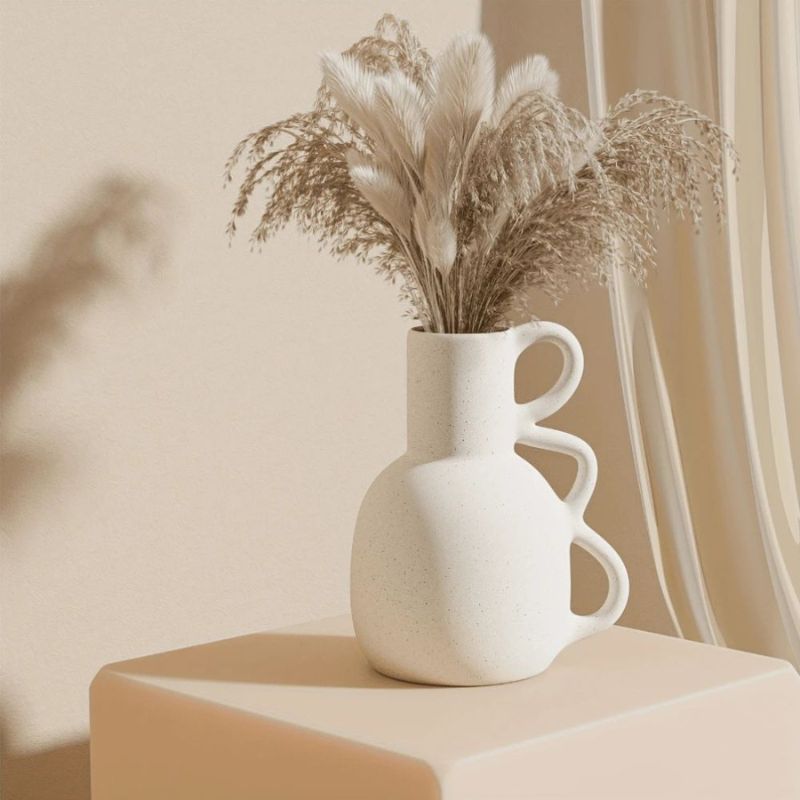 Dekorativ Blomster Vase med Håndtag Inspireret Form til Indendørs Placering