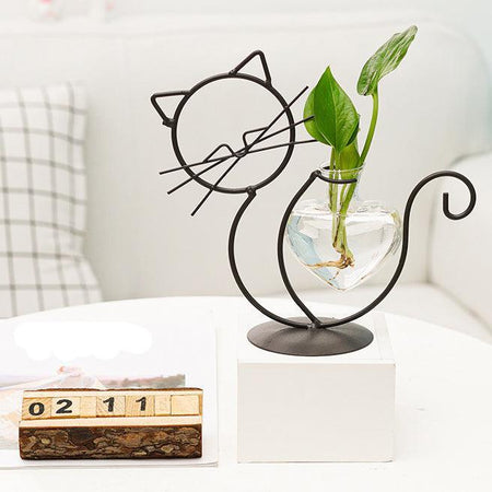 FloraKitty - Unik Katteformet Plantekasse Med Hjertevase til Modern Deasign