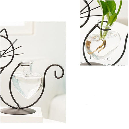 - Unikt katteformet stel med hjertevasedesign.