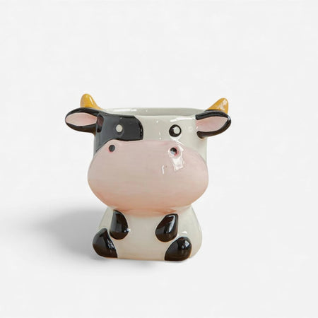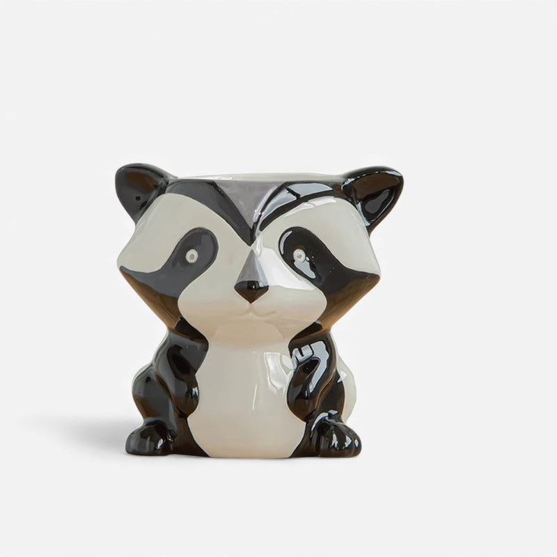 Denne dekorative blomsterpotte har et dyreformet design, der tilføjer et legende touch til indendørs rum. Dens kompakte struktur gør den velegnet til planter eller dekoration.