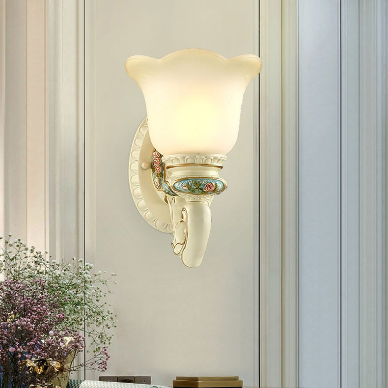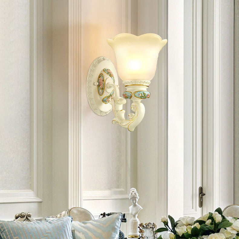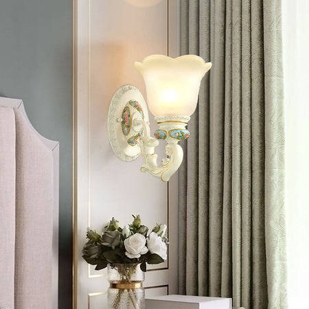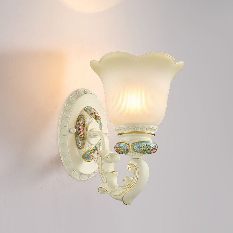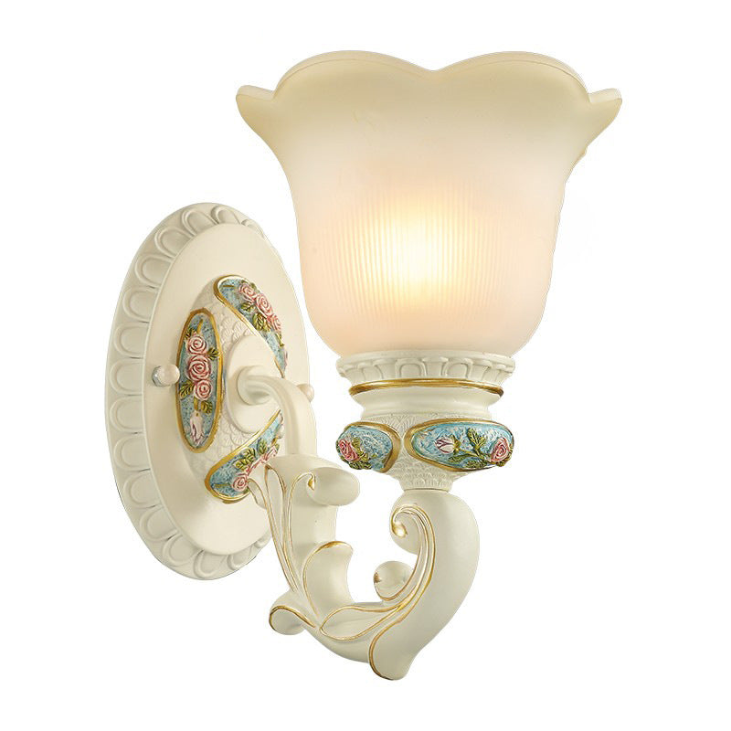FloraSconce – Europæisk Væglampe i Resin og Glas med Blomsterudskæringer