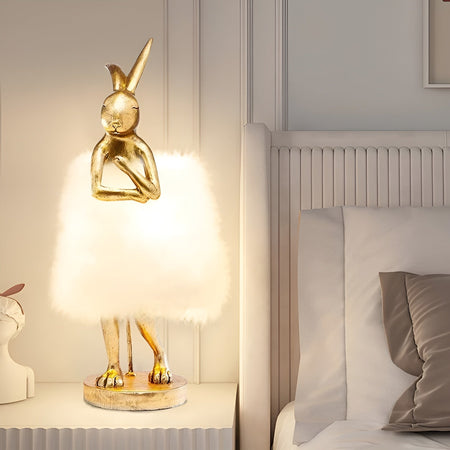 FluffRabbit – Bordlampe med kaninmotiv, bløde fjer og varmt lys