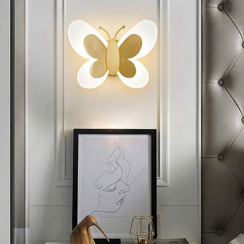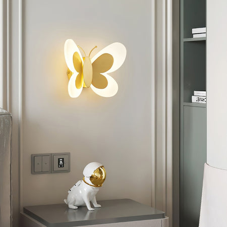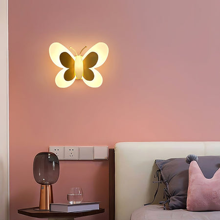 FlutterGlow væglampen har et sommerfugleinspireret design med buede vinger og gennemsigtige akrylpaneler, som giver blødt LED-lys. Fremstillet i holdbar messing, og fås i guldfinish eller sort. Velegnet til indendørs rum som børneværelser, vuggestuer, legerum eller kreative områder. Denne vægmonterede lampe er både funktionel og pladsbesparende.