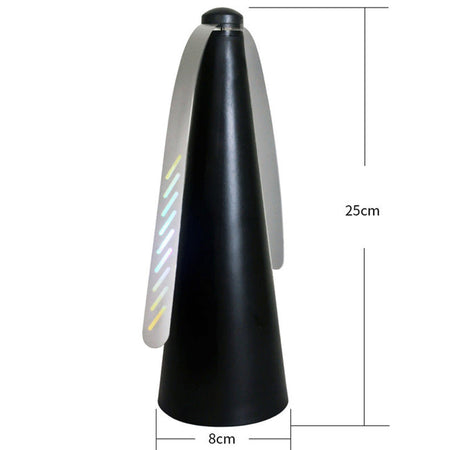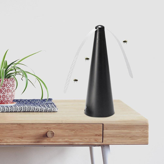 Sig farvel til irriterende fluer og andre flyvende insekter med den bærbare FlyAway-fluepropel! Designet til at holde din mad sikker og din madoplevelse behagelig, skaber denne innovative enhed en barriere mod generende skadedyr uden at skade dem. Du skal blot placere den dekorative pyramide på dit bord, tænde den og lade de roterende klinger gøre arbejdet.