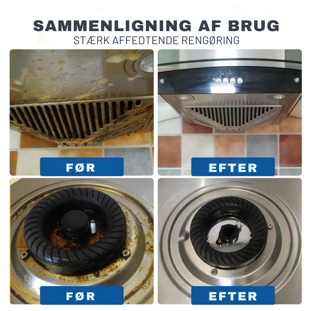 - Sikker at bruge på flere overflader, herunder køkken og badeværelse