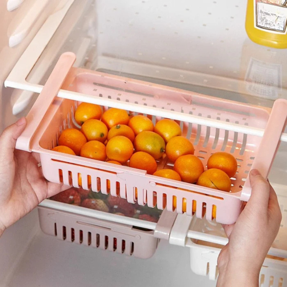 FridgeFlex – Smart køleskabsorganiseringsskuffe med brugerdefineret opbevaring