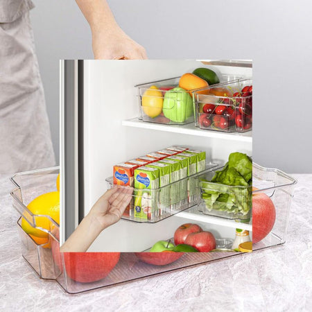 Hold dit køkken og køleskab organiseret med disse opbevaringskasser med praktiske håndtag. Den klare konstruktion gør det nemt at se indholdet, mens det stabelbare design maksimerer pladseffektiviteten.