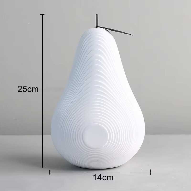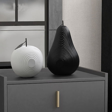 FruitForm bringer et naturligt, men kunstnerisk præg til dit rum med sin detaljerede æble- og pæreduo. Hvert stykke er fremstillet med en realistisk 3D-tekstur, der efterligner overfladen af ægte frugt og tilbyder en skulpturel charme, der er både stilfuld og unik. Ideel til at dekorere hylder, sideborde eller entrékonsoller med subtil elegance.