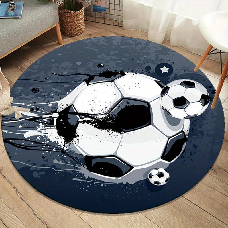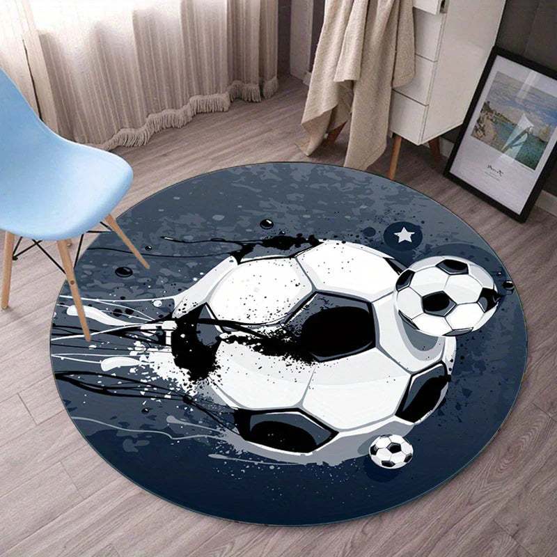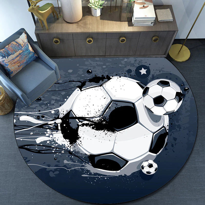 GameGround runde tæppe bringer et legende og sporty touch til din stue eller soveværelse. Designet med et fodboldtema tilbyder den både komfort og stil, hvilket skaber en hyggelig atmosfære, som enhver sportsfan vil sætte pris på. Dens plys tekstur tilføjer varme, mens designet bringer et personligt præg til dit værelses indretning.