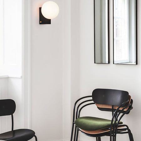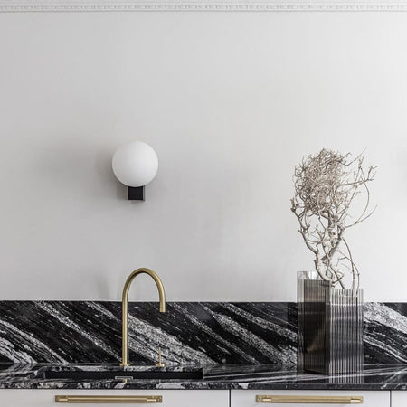 GeoGlow – Moderne geometrisk væglampe med glasglobus