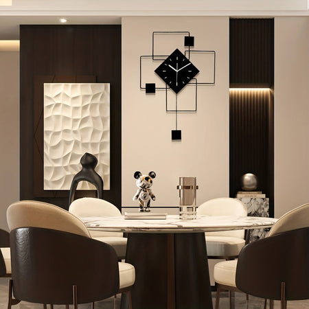 GeoTime vægur kombinerer moderne geometrisk design med den rolige stilhed fra præcis tidtagning. Den dristige, kunstneriske form tilføjer et sofistikeret blikfang til din væg, hvilket gør det til et ideelt blikfang til både moderne hjem og stilfulde kontorer.