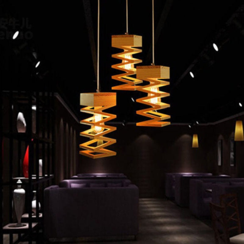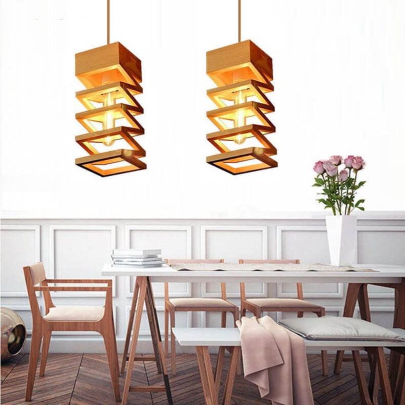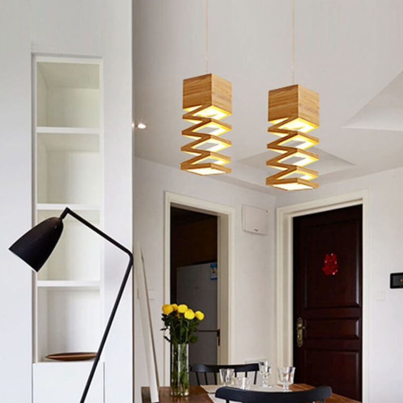 GeoWood – Moderne Geometrisk Pendellampe med Trædesign