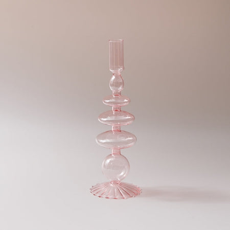 GlassAura lysestager og vaser er smukt designet til at forbedre dit opholdsrum med et strejf af sofistikering. Hvert stykke er omhyggeligt håndlavet og viser et unikt design, der tilføjer en elegant flair til ethvert rum. Den minimalistiske æstetiske og abstrakte form gør disse holdere og vaser perfekte til at skabe en smart stemning, uanset om du placerer dem på dit spisebord, kaminhylde eller hylde.