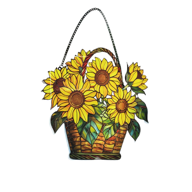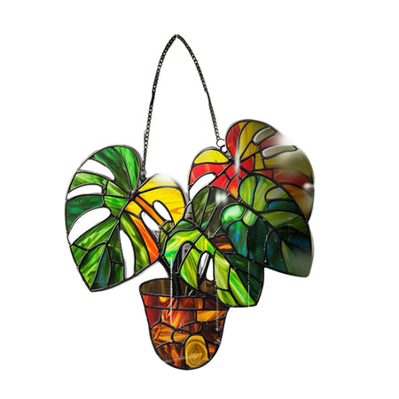 Fremstillet af flerfarvede akrylpaneler med lagdelte udskæringer, har den to stiliserede ugle-silhuetter, der reflekterer lys og skaber levende effekter. En sikker jernkæde medfølger for nem ophængning i vinduer eller overdækkede indendørs områder.